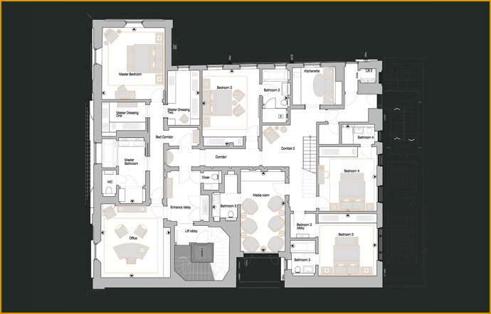 Master Bedroom Suite, with, Lobby, Bedroom, Dressing Rooms & Master Bathroom.